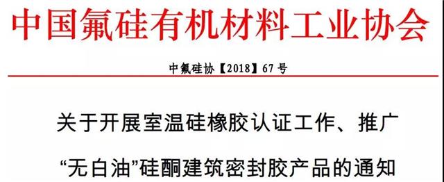 公告:关于室温硅橡胶产品认证,推广“无白油”硅酮建筑密封胶产品的通知!