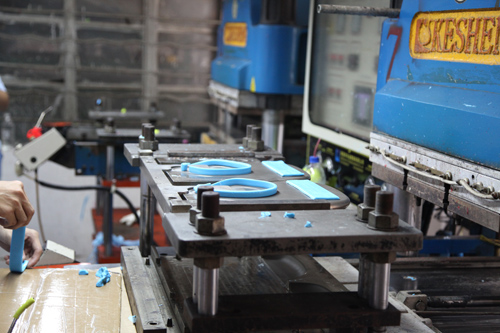 硅胶厨具是一款以食品级硅胶为原料,加入适量硫化剂高温成型的一种硅胶制品,产品无毒无害、无异味。一般以硅胶蛋糕模为主的硅胶厨具制品体积大,成型硫化时间长,所以加工硅胶厨具时等待时间是一个很重要的生产环节。生胶加入硫化剂后,就在发生着化学变化,硫化操作时间从胶体加入硫化剂的那一刻开始计算。