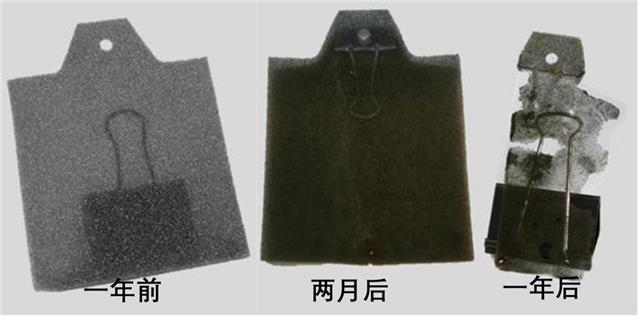 在为期一年的试验中,氯丁橡胶和混合海绵的损伤程度相当,在试验过程中两种材料的实验样本都出现了丢失或损坏。由于阳光暴晒和高温导致 样本材料严重干燥腐蚀,一阵强风就可能会把实验样品从测试板吹下来。
