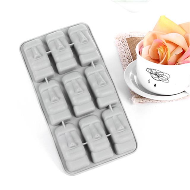 硅胶蛋糕模可耐高低温,长期适用于低温冷冻,冷藏室,用于制作冰淇淋冰块,产品共9穴,可一次性制作9个冰块,外观效果按照复活节石像制作,可定制各种图案与冰块形状效果,产品无毒环保正常使用冰块完好无损,可长时间循环使用。
