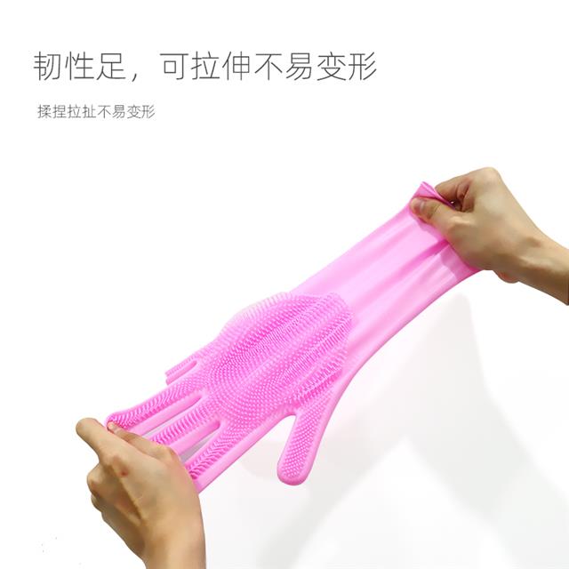 硅胶日用手套,洗碗硅胶手套主要采用柔软硅胶材料生产成型加工,表面刷头可以用于清洁生活用具,餐厨具清洗,日用用清理以及衣服清洗等,材料采用食品级硅胶材质加工而成,可耐高低温-40到260度,安全环保,耐磨抗拉力力度强,可用于多功能家庭洗护使用!