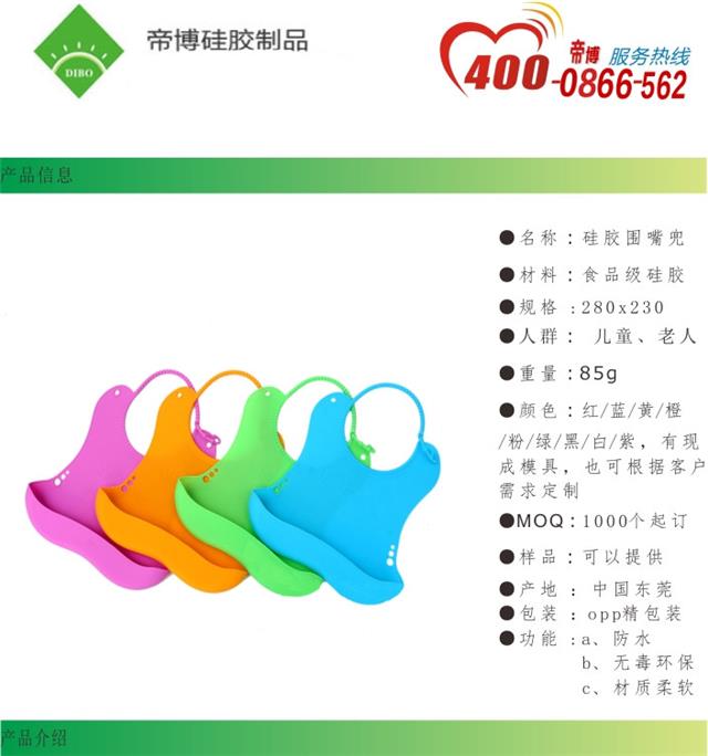 1 独特的硅胶带状设计,底部是围兜造型,用于接掉落的食物,保持衣物干净。 2.适合婴儿、老人及病患者使用。避免用餐时弄脏衣服,方便实用。 3.柔软无毒食品级的硅胶材质,适合与肌肤接触。 4.耐用易洗,可重复性使用,清洗方便,只需轻抹即可恢复洁净。 5.我们的硅胶口水兜柔软材质,可卷起收藏,方便携带。让用餐时间充满欢乐,是理想的餐用围兜。